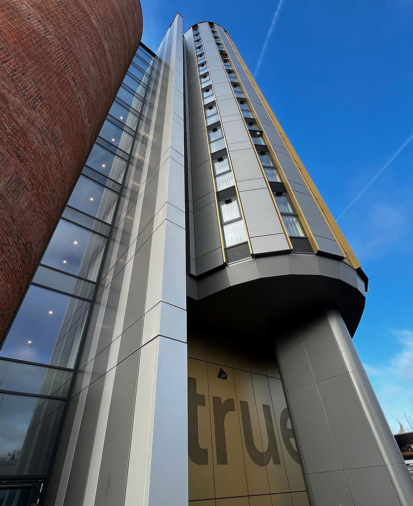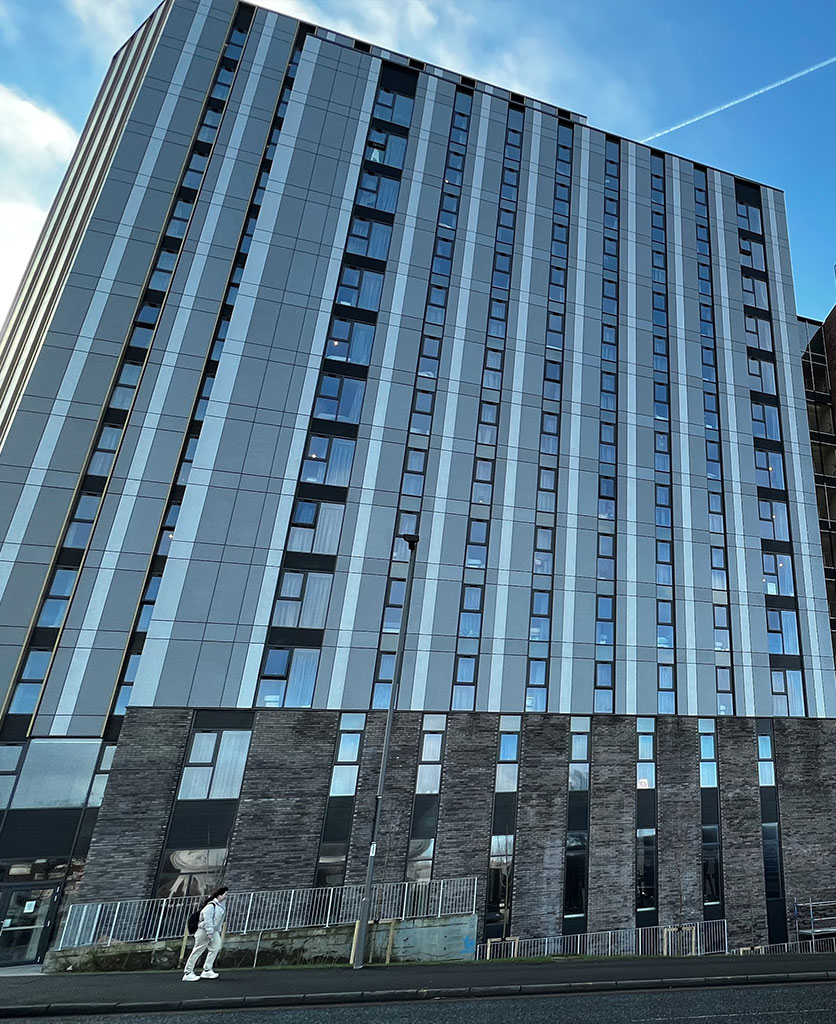 The Project Aura Liverpool involved the construction of a new 3000m² build spanning two blocks. For this project, we manufactured 3mm aluminium cassette panels in three different colours alongside 250m of 3mm aluminium roof.